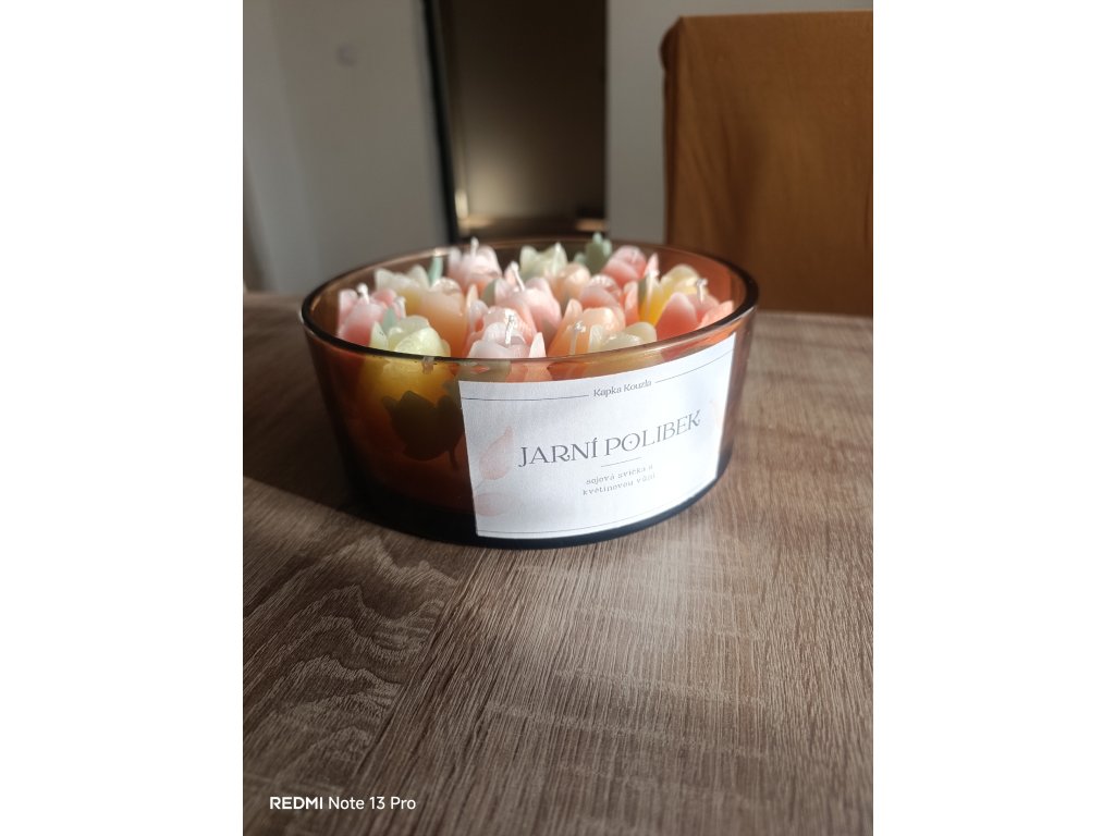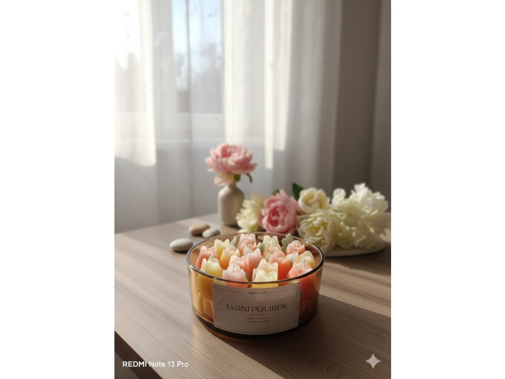 Typ vosku: Převážně sojový vosk (základ) + dekorační vosk (květy).